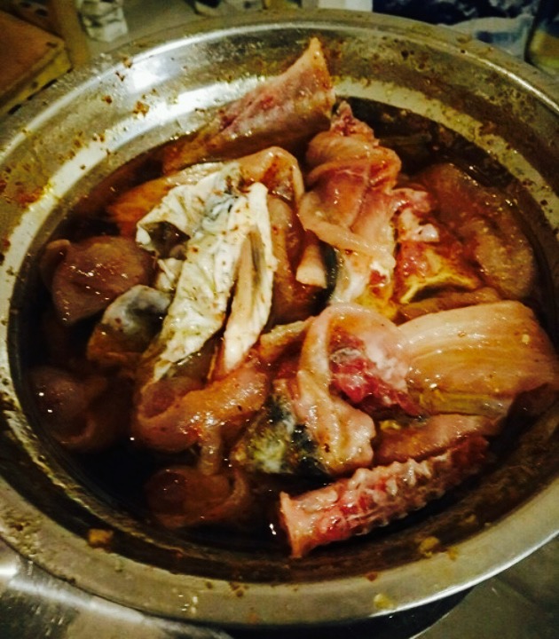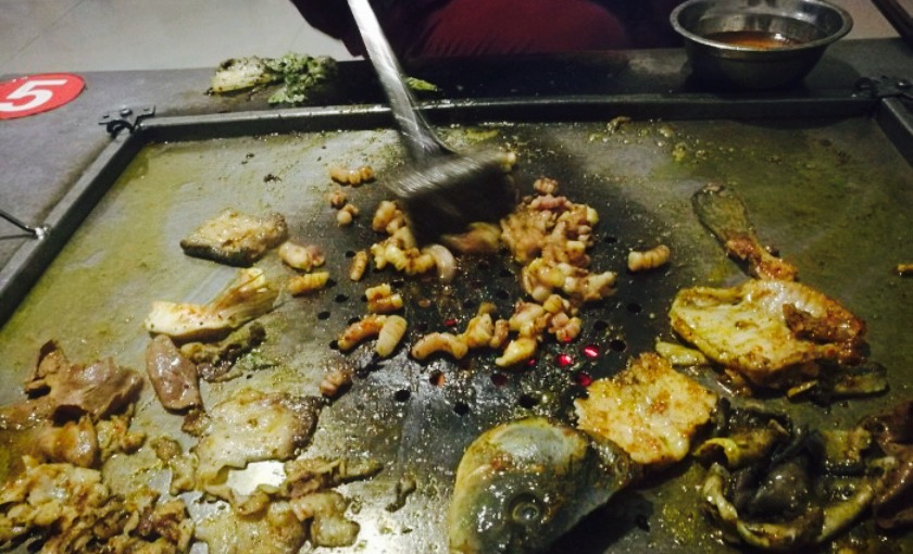 吃了一天的肉本来完全整不动了,被一直安利说秒西昌烧烤。看了下喷火动态图,下着小雨略困的情况下硬着头皮去了。到的晚,有点菜没了。推荐下鱼肉,肥肠,胸膘,牛肉泡的油太多,虽然薄片比较嫩。据说泡椒郡肝美味,泡椒类的是特色,通通卖完了,鱿鱼茄子也没吃着。老板娘跟桌烤全程,有些类似于铁板烧的样子。喷火的时候比较漂亮,全体举着手机等着拍。