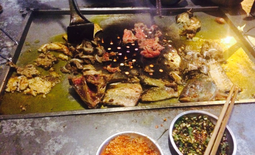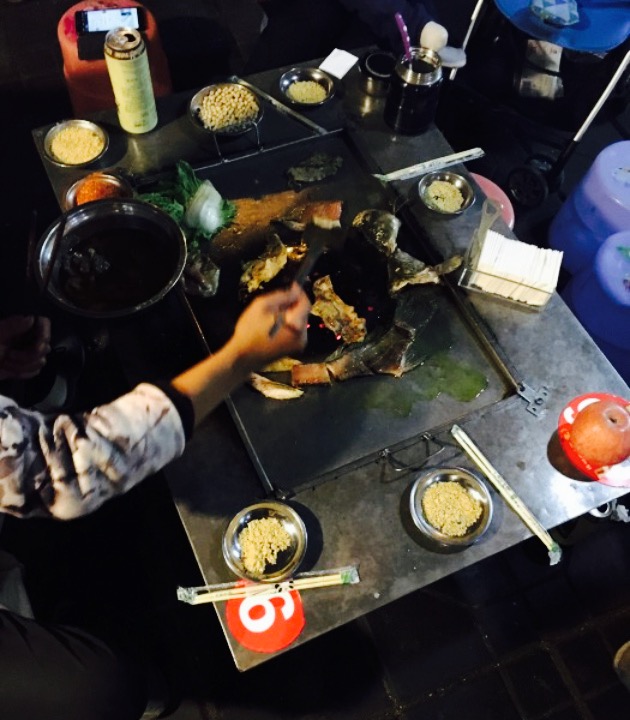 专程从成都过来吃的,听说味道很赞。这次来一试,果不其然呢。石棉烧烤,有专门的店员帮我们烤,火焰气氛很不错。本地的鱼好嫩,口感很好,没有什么刺,除了不太好夹以外,其余都满分。另外,环境实在是苍蝇馆子那种,真心一般,在外面随便摆了几张桌子,可能这种烤肉系列也只适合在外面弄,不然整个房间都要被熏黑。还是很值得推荐的。