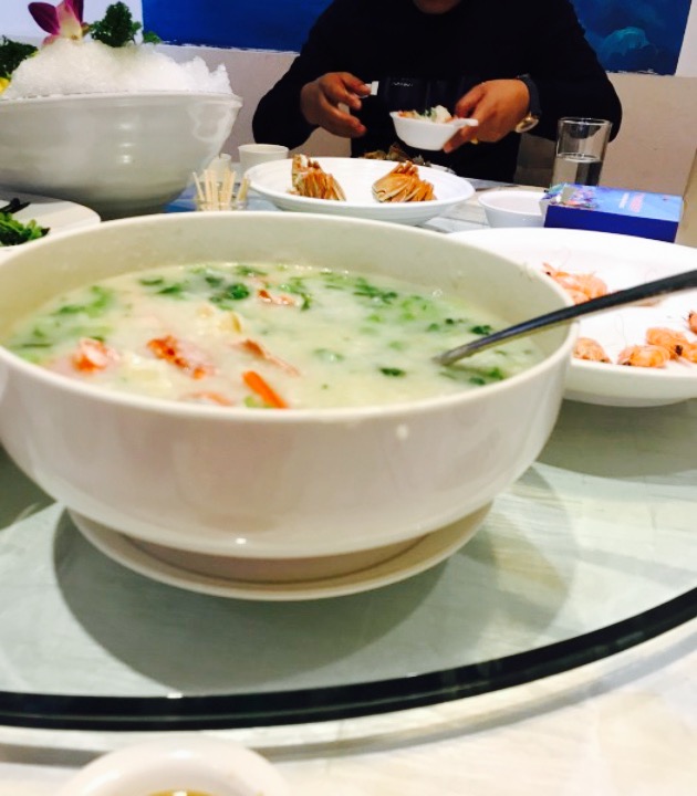 来银川的最后一顿午餐在同伴本地同学的盛情款待下完美收官。同学想的非常周到,说是来这几天肯定吃了很多牛羊肉,索性换换口味,吃点清淡的。实际上,别人就是客气一下,这是对于不爱吃牛羊肉的我吃到的最美味的一顿饭了。烧鹅虽然有名,不过味道一般,很腻,海鲜粥非常入味,伙伴都喝了好几大碗。蒜蓉虾很可口,第一次这么吃虾,味道很好。由于是星期天,遇到了一场婚宴,上菜速度比较慢,不过环境很好,有点异域风情。银川这座城市让我感觉又爱又恨,爱的是景色真心不错,非常美。恨的是有些人非常不友善。总之没来过的值得一来,来过的就不想再来第二次了。