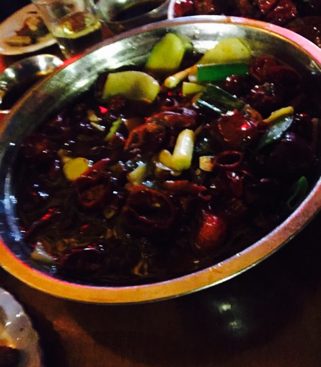 逛完超市想吃鱼,就来了种草很久的老跳。不得不说,是真心火爆。上了二楼后很有幸的窗边有个位置,店内气氛很火热。或许是去的比较晚,想吃的鱼都没有了,最终点了江团,两斤三两对两个人来说还是有些多,结果只能少点点儿菜了。酸萝卜锅很带劲,酸萝卜和酸菜越煮越有味道,最后还打包了一份酸萝卜回家。带回家一定要拿个密封性好的盒子放,刚开始没在意打包袋装着就直接放冰箱了,结果满冰箱的酸萝卜味儿╥﹏╥。在吃到最后的时候下一小撮手工面,面条吸了锅底的汤汁,酸酸辣辣的很美味。