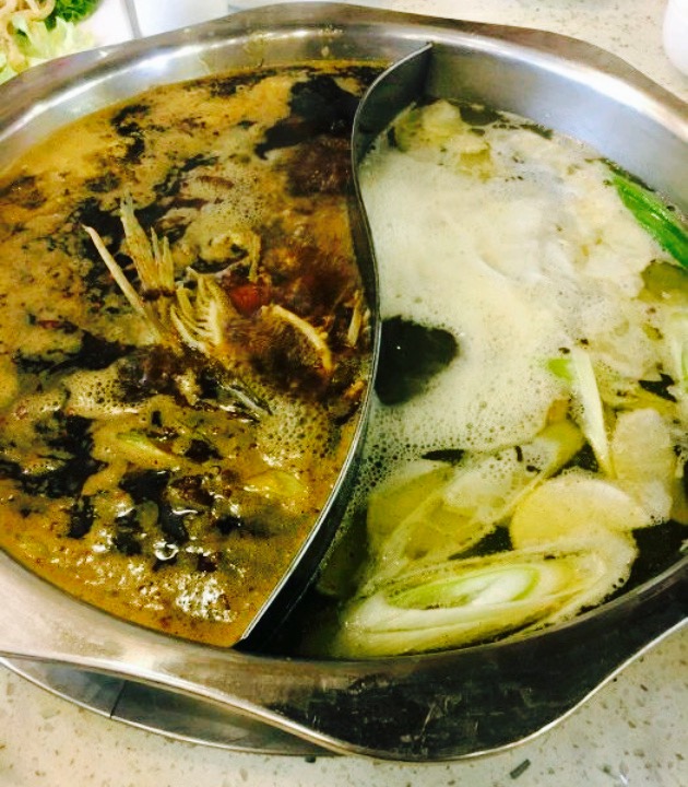 朋友推介的,专程去他家吃鱼,味道还是很不错的,点的鸳鸯锅,酸萝卜部分味道很地道,空口吃萝卜很酸爽,清汤部分很鲜美,能突出鱼肉的鲜味。江团刺不多,辣和不辣两边的鱼肉出来味道都很好。千叶豆腐是第一次在火锅中吃,很特别的口感。还点了他家有名的油条,入味但不够有特点。总体吃的很高兴,果然老店经得起大家的挑剔口味团了两张券,优惠了三十块,还是挺合算的。
