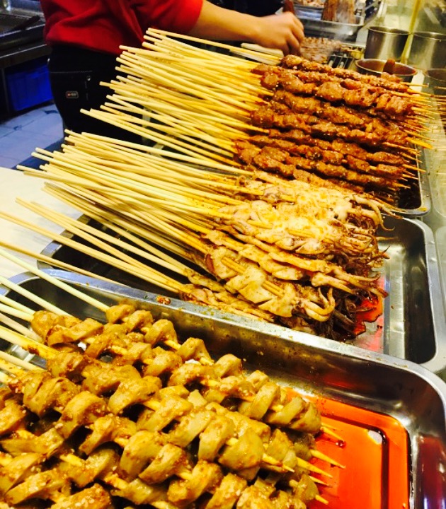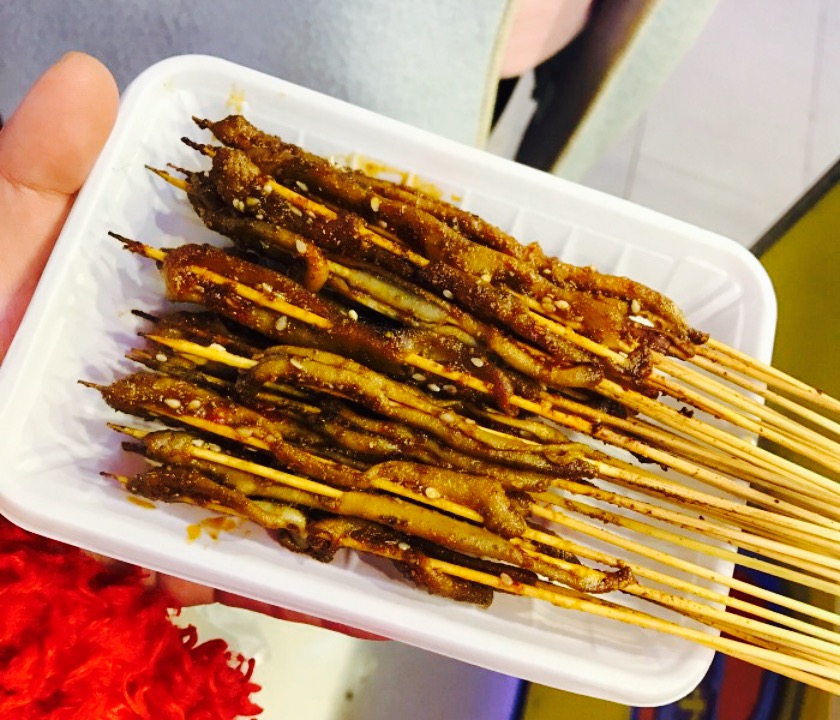【位置】,江汉路happy站台,鲜芋仙附近。地理位置好,而且门面比较大,在happy站台里属于比较显眼的了。【环境服务】。透明操作的小店,谈不上什么服务。烧烤小哥态度挺好的,收银的态度一般。【味道】。这家的辣椒味道还是不错的,我们是看见很多人买鸭肠,来试试发现味道还不错,后来每次来happy站台就都会吃了。除了烤鸭肠还有肉串也不错。10月4串还挺合算。但至于肉新不新鲜,质量如何我就不做评论了。爱辣椒的可以来吃,只是建议也不必多吃。