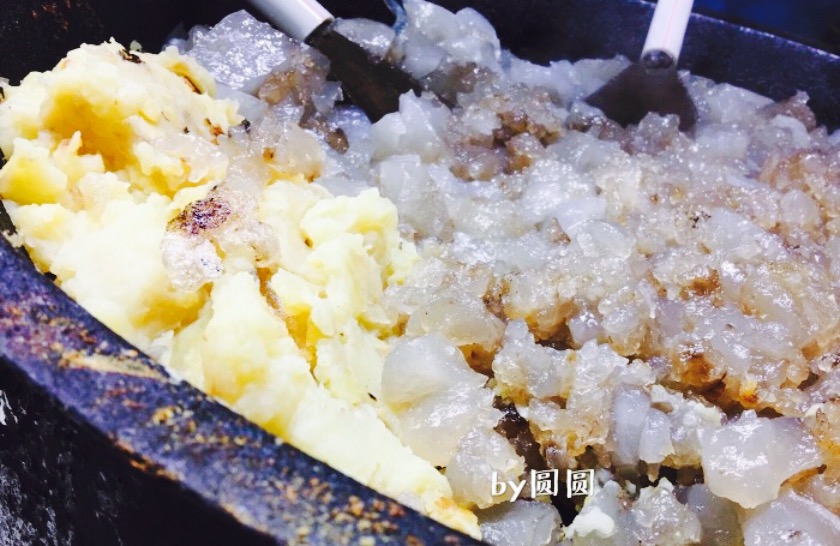特点的土豆泥焖子,软糯的土豆泥香气十足,豆腐皮和土豆泥搭配着吃起来觉得非常香,令人难忘。大豆蛋白属于甜香口,微辣,对于不能吃辣的人来说简直棒极了。撒尿牛丸的汤很舒适,喝起来一点也不腻,圆子的口感不像是买现成的,松软的,挺好吃。