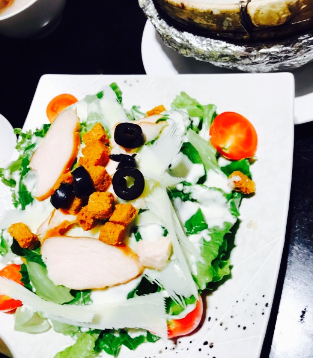天气一下子就热了,和老公不晓得吃什么,溜达到电台道,发现盛世佳换成二楼小坐了,因为已经晚上8点多了就和老公点了一个凯撒沙拉和意面和甜品,因为喜欢沙拉里的酱汁就让老板多加点,端上来已经是扮好的,觉得比别家普通的还少,就想让老板再加点,不知是老板娘还是服务员立即就不开心了,说是已经够多了,好吧,我只能说餐饮业拼的是服务和口味,要是都一般,那我就晓得为什么才晚上8点就那么1-2个人吃饭了,希望商家多改进吧。