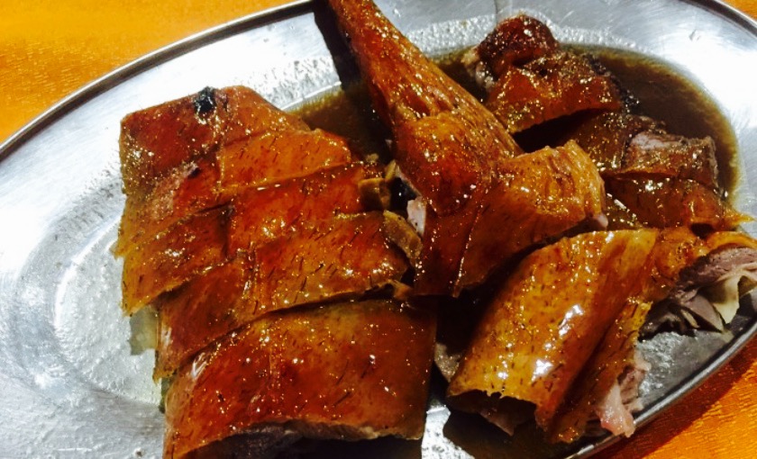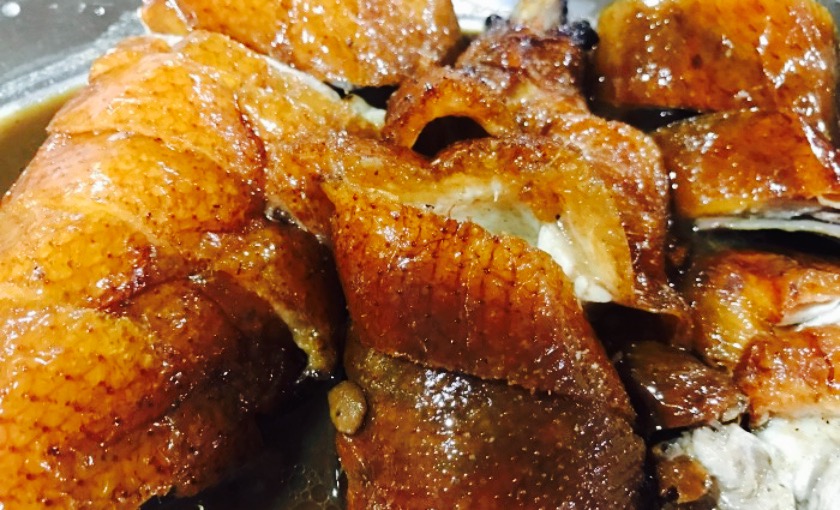 新年的时候,从杭州旅游回广州,在高铁上与邻坐聊天,他给推荐的本地人喜爱的食堂,今天是冒着雨驱车前往的。大厅很宽阔的,门前停车,外面看到一只只挂着鹅,边上有一口缸,一位师傅在旁边操作着,正往缸里挂鹅。坐下来后点菜,居然没有菜牌,嘿嘿,肯定都是熟客多,菜牌可以节省了。一口气点了烧鹅,豉油皇鹅肠,白灼河虾,煎焗白鳝四个菜,烧鹅是我吃过最好味的烧鹅,皮脆,肉厚,味道中等,不会咸,煎焗白鳝很好吃的,河虾清甜又新鲜,鹅肠是没有用化学品清洗的但又洗得很卫生,吃起来很有原味的,今天只有四个人吃饭,看到邻桌还有好多没吃过的菜品,只能待下去来了。