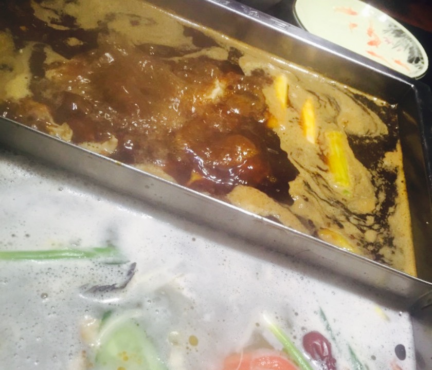 过年时候来的,人超级多。去年过年也来这吃了,想不到今年还这么多人,服务更好了,很热心,到位。可以吃鱼火锅或者菜火锅,鱼都是新鲜现杀的,但是我们吃的菜火锅。火锅味道闻着就非常香。上菜很快,服务生虽然忙疯了还是会帮着下菜。菜火锅的话荤菜种类不太多,羊肉只有小肥羊一种,毕竟不是主打,肉质一般吧,一煮会比较碎。整体菜量不太大,可是味道确实不错,微辣已经挺辣了。鱼火锅是特色料碗,菜火锅有自助料碗。芝麻酱好浓啊,很实在的芝麻味。菜火锅还可以打68折,我们7个人才吃了380多。吃完以后底料可以打包,要是不打包的服务生会当面往锅里倒墨汁,证明不会回收,安心。