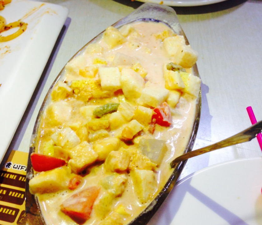 ??????最爱的披萨来了。????????一直喜欢吃披萨, 。之前总是选择米斯特家的披萨, 。之后发现101的确实不错,????一直感觉必胜客家的披萨很一般, 。????吃过几次之后就不再尝试。 。??????超级棒披萨是三年前就明白的店, 。原址在华南中学, 。可能那个位置比较偏所以商家就改到了非常繁华的山东路上,特别好找在甘井子税务局的正对面。????????我弟弟是一个吃素的人,所以一般吃这家披萨都会点两个。一个素一个荤,现在这家披萨可以做半对半,简直不要太贴心。??????。????????他们家的红薯披萨是招牌每一次点的人都非常多特别推荐大伙吃,芋头很细腻。另一半选择的是培根芝士披萨,味道也特别好。????。??????????????????最记得推荐的就是她们家的奶油海鲜意面,招牌中的招牌,不少人慕名而来。关键是性价比特别好,面做的很筋道。满满一盘, 。自己一个人吃也很适宜。??????店家推荐的水果沙拉说也是她们家的特色别的地方水果沙拉不是这么做的,味道也十分好就是量有些少,建议卖家可以多加些量。??我们没有点饮品,卖家送的茶说是可以减肥,有种荞麦的味道口感比较细腻很好。????????????????????这是我的食单里保留的店铺所以推荐给大家。