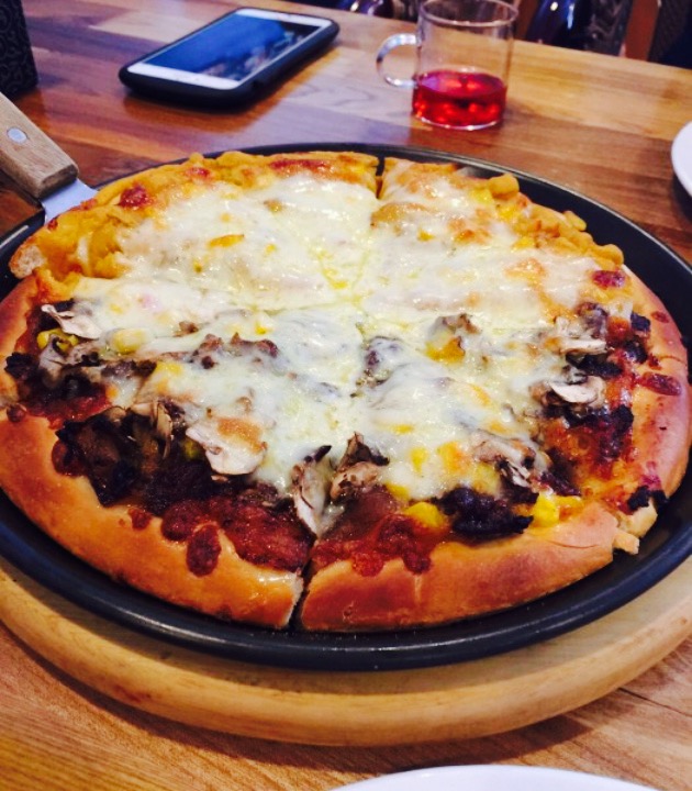 ...甘甜,芝士很醇厚,但其实我更喜欢烤牛肉披萨,味道调的太入味了,鲜辣的口味,配上店里的辣酱,绝配
