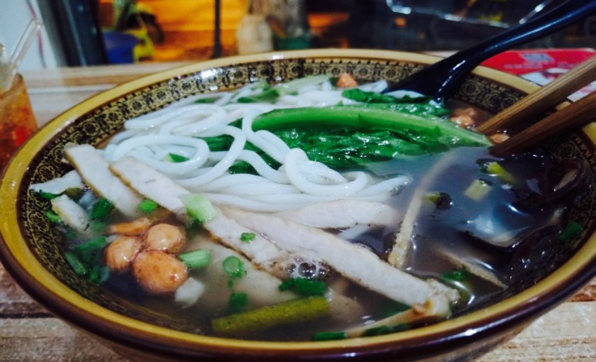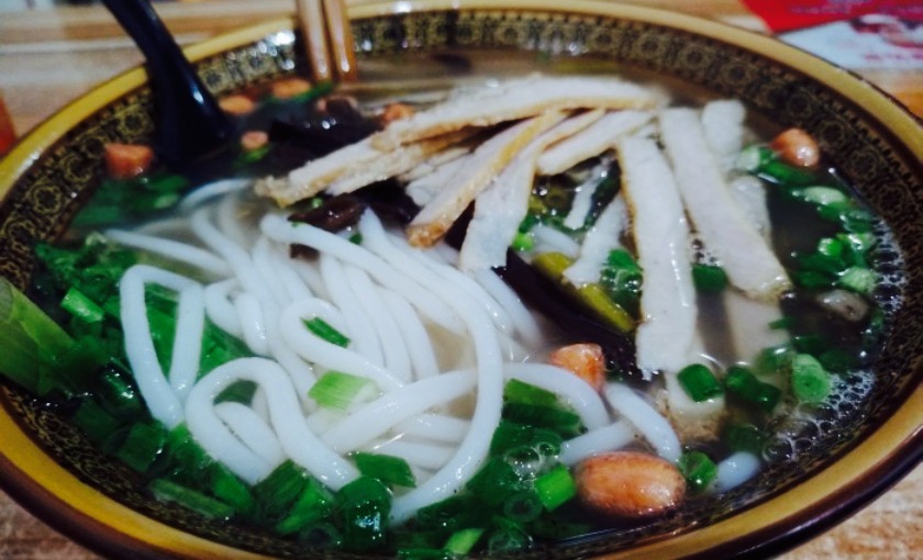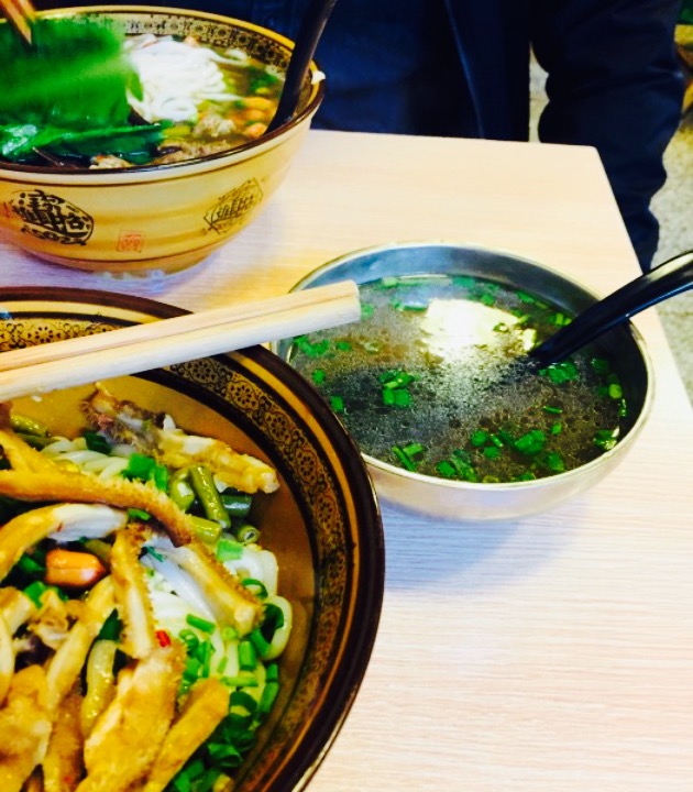 汤的确是非常加分,喝了两碗。要了一份干拌卤粉,加牛肉丸子,加荷包蛋。牛肉丸子不是那种面粉疙瘩,是很筋道那种潮汕牛肉丸,一份有四个,不过我实在点的有些多,就分了两个给同行的男生。周一的中午人好多,连隔壁也坐满了,服务自助,附近的会有人送餐,老板有时会忘记你都加了点什么,不过态度都很友好,为了汤可以再去。