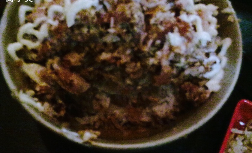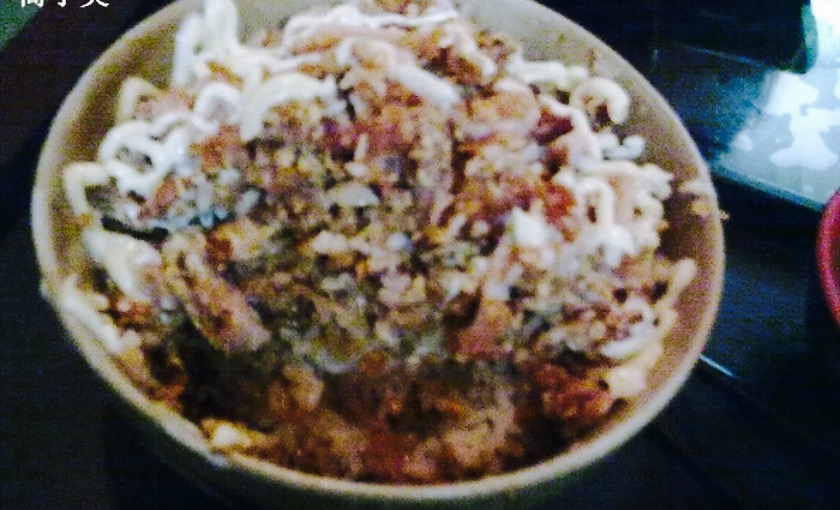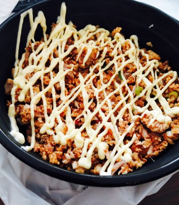 炸鸡沙拉酱拌饭啊。不废话直接就说这个。怎么有如此爽口的饭呢。饭是用酱料拌过的。铺了一层厚厚的炸鸡碎。上面还浇了厚厚的一层沙拉酱。吃第一次就惊为天人。软嫩香脆口感都有。爽口的要命。连我家矫情的胖子都感觉美味。那是的确鲜美。还能送餐啊OMG。