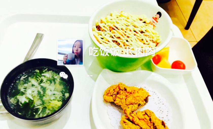 小菜,海带好吃,辣白菜不够辣,很可口。无食堂之,午餐篇?大鸡排,胃口大的必点,超级满足