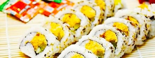 有时经过的时候突然像吃寿司了,围观了一下菜谱,感觉种类还挺多,决定试一试。点了一份樱花寿司,15元,一份蟹座什么寿司,15元,正好团两张12抵15元的现金券就够用了。外带的包装还可以,到家基本没问题。樱花寿司里面主要有肉松大根黄瓜,还有一种脆脆的东西不知道是啥,打包的时候我让师傅加了色拉酱,比较习惯这种吃法。蟹座寿司主要是蟹柳,还有一些基本配菜,只是上面白白的粉不知道是啥。总的说来口味还可以吧,价钱真的是公道的。
