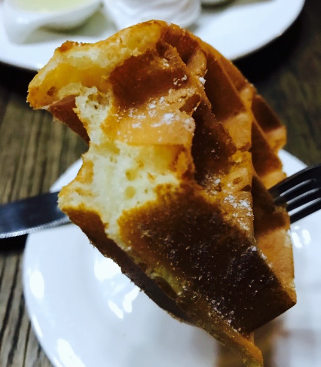应该是乐山环境最好的一家咖啡馆吧,位置就在王府井,挺好找的。华夫饼竟然有咸味,烤的有些老