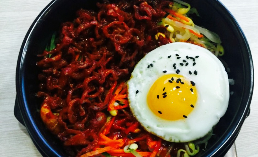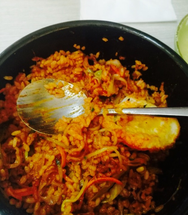 ...毕业五年了就没再吃过石锅拌饭,点的鱿鱼拌饭,红萝卜丝和豆芽,配上弹牙的鱿鱼丝,味道还算是不错啦