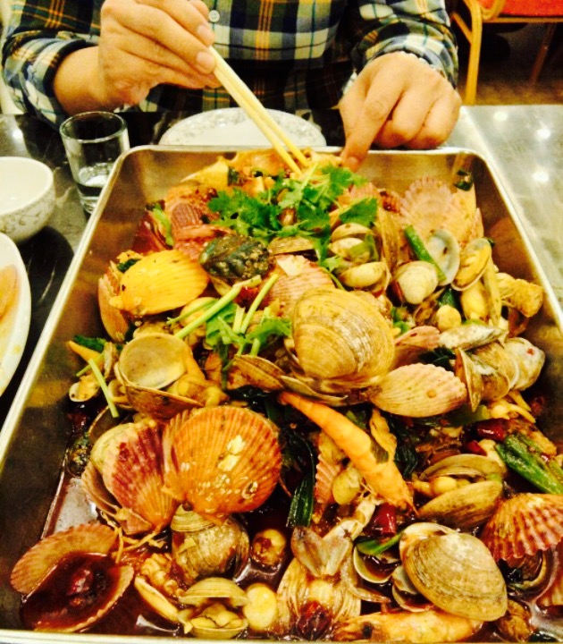 就在延安路上,原先的自助,离公司很近,因此就来尝试,貌似没有开业很久,里边的装潢还挺意外,虽然还是原本的规格,就是人不太多,觉得很冷。开业好像有打折,打折后不给开发票,整体海鲜价格便宜,我们只是三个人出来解决一下工作餐,加上有个小朋友不喜欢吃海鲜,就随意吃了点儿。粉丝蒸扇贝虽然不贵,不过肉和壳是完全分开的,有点不太好,吃起来倒是也没有不新鲜。那个一圈窝窝的忘记叫什么了,还挺好吃的,不咸,挺香的,黄花鱼丸汤,稍稍有点咸,胡椒粉不够多,有些腻。鸡蛋韭菜炒大蛤,这个实在是佩服老板,这么舍得下料,四五个鸡蛋是一定有的,这家别的不说,就这菜码,实在是相当大啦。等天暖和一点儿再来尝试别的,现在实在太冷。
