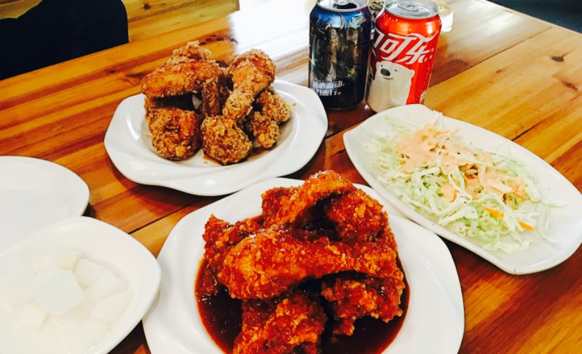 以前也尝试过果酱的,但以为太甜了。这次朋友说喜欢果酱,就一半原味一半果酱了。惊喜的发现这次的果酱超美味,原味的也很香。鸡的确是炸的刚刚好,熟透了又嫩。实在是忍不住一次又一次地光顾这家的炸鸡。蔬菜沙拉也是,一直都很开心。对了还另外点了炒年糕,和想象的不一样,不和别的韩料店一样用甜甜辣辣的酱炒的,有点像家常炒,味道也是不错的只是20元确实有些小贵。