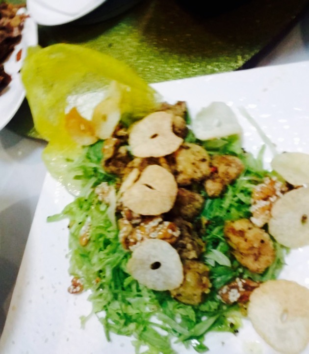 菜品,她们家的特色菜是烤鸭,河豚,我们点了一只烤鸭,一人一条河豚