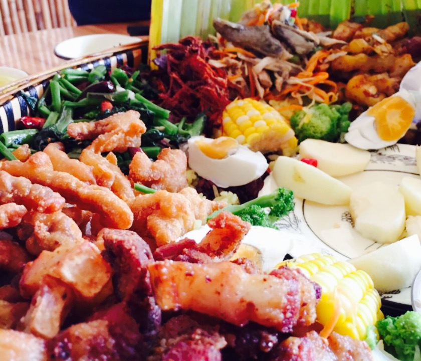 这是一家傣味菜馆,对于吃惯川味菜的我来说,味道不错,环境整洁卫生这是一家傣味菜馆,对于吃惯川味菜的我来说,味道不错,环境整洁卫生。老板娘人很好,节假日期间都没加价,包括酒水饮料都没加价。或许是昭通的水果总类不多的缘故,手抓饭配的水果不多。