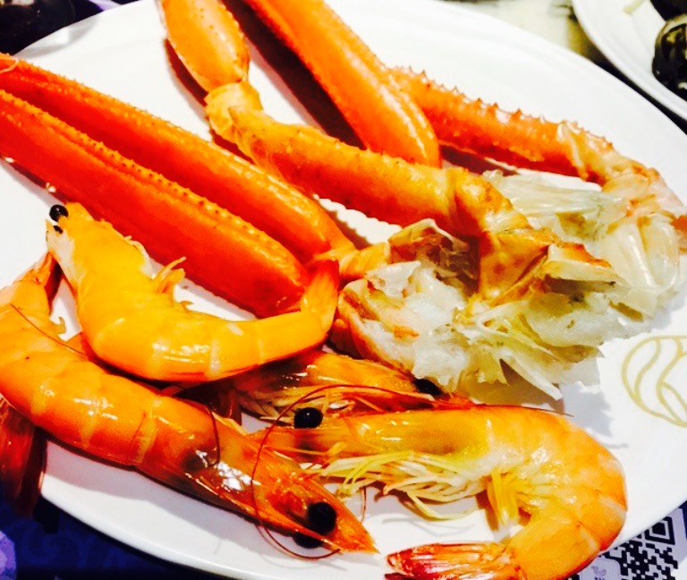 不出海享受新鲜海鲜。来到装饰富丽典雅的鲸鱼岛,心情很美妙,看着冰上陈列新鲜诱人的海鲜,感觉真爽,抑制不住直奔主题。先来上点新鲜还在动的鲍鱼和罗氏虾放在沸腾的高汤中翻滚,不一会起锅开吃。佐以海鲜调料,鲜甜绝味。不一会大闸蟹和烤制七分熟的牛排由帅哥服务生送上桌,闸蟹两只都是母蟹,蟹黄巳满,香嫩爽口。牛排选用的精品肋排再加上烤制的火候控制的恰如其分配上黑胡椒粉调味意忧味尽。烤生蚝的味道也不错??,三文鱼和北极贝也很新鲜加点芥末和海鲜酱油又别有一番韵味。饮料也不少,各种鸡尾酒,西瓜汁,啤酒类,最值得推荐的还有8种口味的哈根达斯冰淇淋。其中总有一款适合您。当然价钱有些小贵,毎位200元,还是值得去感受哦。要是有广发银行的信用卡星期三可五折优惠。遗憾的是从六点吃到七点法国红酒鹅肝还没给我们上,因为要赶去看电影也就没有计较,希望下次改进哦。
