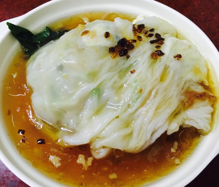 以前开在路边,早饭吃的,觉得肠粉本身还行,淋的酱一般。后来搬进里面一点的店面,好久没去。还有炖汤之类,但是没喝过。肠粉感觉比以前的入味,以前看过下他在某网的广告,有加【腐皮】,这次特意叫了。腐竹的味道好像有股炸了几百次的猪油炸出来的。并且还没有泡开,好硬,老板娘太热心了,不好意思和他讲这个事实。肠粉本身做得很薄,好吃 。结论,叫最普通的最保险的。