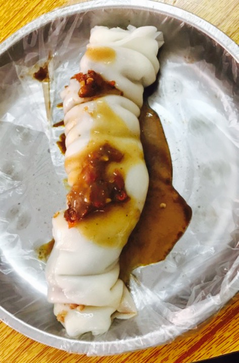 夜晚的生意好到爆,之所以排队很长,由于每一根卷筒粉都是现场制作,老板娘同时操作着两个锅,她女儿负责收费和整理餐桌,手脚都很利索。卷筒粉本身特色就是新鲜,刚刚由于高温蒸汽而固化的米浆有股特别香气,但与生榨米粉也有差别,它的香气偏清甜,配料可随意搭配,值得一提的是,特点的酱汁很惊艳,一个是黄皮果酱,一个是酸辣酱,都很可口。
