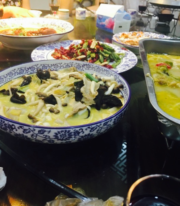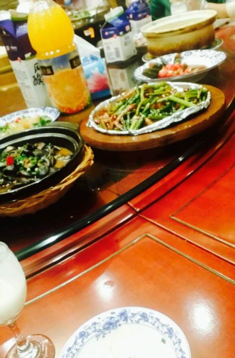 跟车来吃的饭,具体位置不大清楚在哪,店面挺大的,装修的很漂亮,很有特点。点菜是明档点菜,自己去看着菜点,没有菜单的,点了一份荷包蛋鱼头,一份河蚌汤,一份蒜泥空心菜,一份牛柳,一份萝卜猪蹄汤,一份西兰花虾仁。菜的份量很足,荷包蛋鱼头很大一盘,旁边放着三个荷包蛋,这种烧法挺特别的,不过鱼肉很美味,肉质也挺嫩的。河蚌汤很鲜,里边的料也很丰富,有豆腐,蚕豆,木耳等。牛柳里面还有炸土豆条,吃起来很有薯条的样子。萝卜猪蹄汤很滋补,猪蹄也炖的很烂。蒜泥空心菜不功不过。西兰花虾仁摆盘很漂亮,西兰花围在虾仁边上摆了一圈,边上又放了一圈黄桃,色彩搭配也很漂亮,虾仁处理的挺卫生的,吃起来很舒心。总的来说这家店口味都不错,服务也挺好的。