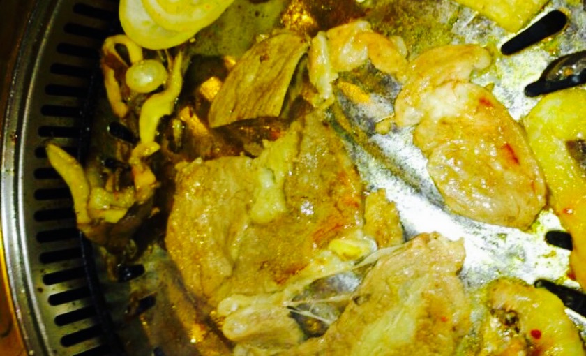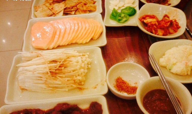 原来的过大年饺子。这家是民俗的炭火烤肉,有专门负责烧炭的大叔。烤五花肉,现在肉质不及刚开业的时候,越来越肥了,不过蘸上酱包上生菜,一口吃下来,还是觉得蛮香的。烤牛肉,说是腌渍过的,但吃起来并没有腌渍香味,一般。S特外,想吃吃口嫩一些的肉,服务生推荐这种,结果并不嫩,很一般。烤蘑菇,还不错,我喜欢吃火大些的,开心。烤茄子,这次的茄子烤起来不如明香阁的香,和肉混起来用生菜包着吃了。烤牛舌,因为牛舌太薄,烤起来实在是又费事又不好掌握火候,所以这个不建议点。炒杂菜,里面有粉条,青红椒丝,肉末,甜咸兼具,口味挺重的。辣牛肉汤,里面有什么我已经忘了,肉肉给的还蛮多的,点汤会送一碗饭。泡菜饼,久闻大名,总算吃到了,感觉很香,很入味,每次去都会点。海鲜饼,觉得不如泡菜饼好吃,口味很淡,饼的蛋饼感觉太明显,又不够香。冷面,不是荞麦面,味道还算可以,可是里边的牛肉太老啦。炒年糕,他家的炒年糕实在是不受我爱,味道一般不说,年糕煮的也不够火,完全比不上韩国城小店的档次,不推荐。烤青菜里面有一款是烤生菜,我直接把送的生菜丢下去烤了,烤得久一点就可以吃到酥酥的口感,很入味呢,哈哈哈。
