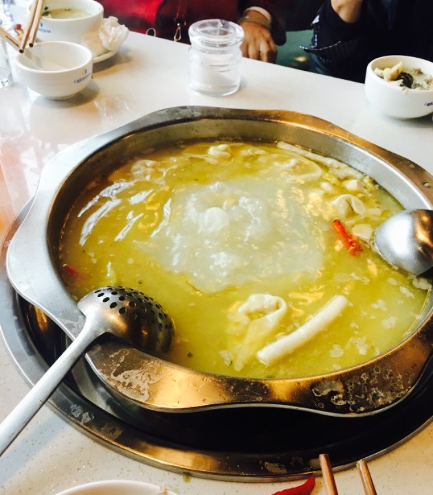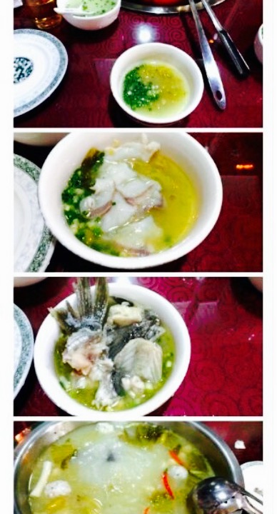 当地人推荐的,据说饭点会排队,5点去的没人吃到快7点也没坐满,没有传说中的那么火爆啊。专门有个窗口选鱼,边上是点菜的,只好看里面有啥菜单没啥用。山椒锅真的很鲜,汤就喝了好几碗,之前在华阳那边吃过一家乌鱼也不错就是喝完口干,味精加的多,可是这家没有这个觉得,纯天然很多。鱼肉是店员帮忙涮的,我们说自己来然后人家表示自己涮掌握不好火候,服务还是很不错的。乌鱼肉质细嫩,刺不多,沾碟非常辣啊,其实直接吃什么都不沾才能吃出鲜味来。鱼皮接受无能。吃完鱼肉还可以涮点菜。