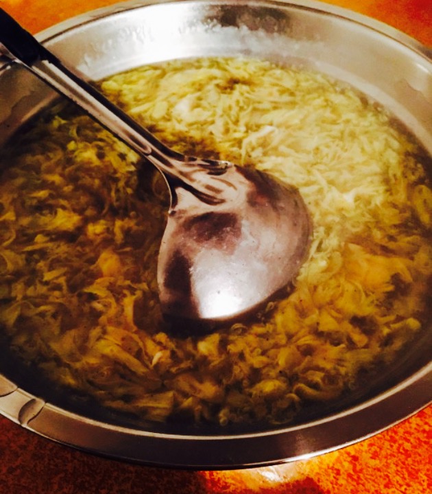 地址在工人医院对面,汇源的巷口里。辣汤油条是徐州人经常吃的早饭,然而这家辣汤油条却反其道而行之,每天晚上22点才开,开到凌晨三四点。就是这个时间,让他在徐州特别的火,每天晚上都有不少人排队。地点不要多说,汇源巷口里,大家都知道。如果有人要问具体位置,那么你就沿着那条路一直走,走到一个灯火通明,聚集了不少人,特别是好多光着膀子的人的地方,那里就是辣汤油条的地方了。而那几个伙计睡眼惺忪的,每次买都担心他们会不会倒在辣汤里。要是有外地的朋友来到徐州,肯定要去尝尝徐州的辣汤油条哦。因为这是属于徐州独有的味道。