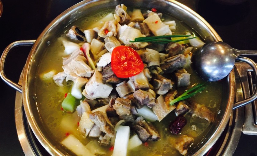 西昌特别火的一家店,人气挺旺的,不少等位的,服务生推荐的小锅,上来一看真是满满一大锅,点的腊排骨和鸡肉锅,里面有玉米,冬瓜,葫芦,菜花,根本不用再加菜,汤越煮越浓厚,这个天气喝的很惬意,小料需要自己配,辣椒都是菜籽油炒的,很远就能闻到香味,再配上糍粑,吃的暖暖的。