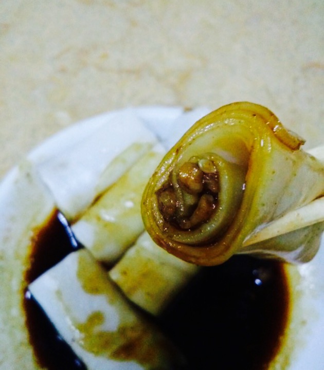 江门最美味的粉卷,九中街裕记,酱汁较特别,类似稍甜的烧鹅汁,所卷馅料是肉丝。位置就在9中街口,唔知又有几多人噶回忆呢。唔知响度留低几多脚印,最中意吃距d粉卷,好多年了味道无变,最近经常去,每次过来都要点上几碟。 。另外还有是油鸡脚,价格白菜,还有炖蛋也是挚爱。属于江门人的回忆,裕记粉卷。另外小店环境舒服,老板娘热心。会一直支持这种传统,又富有情怀的小店。