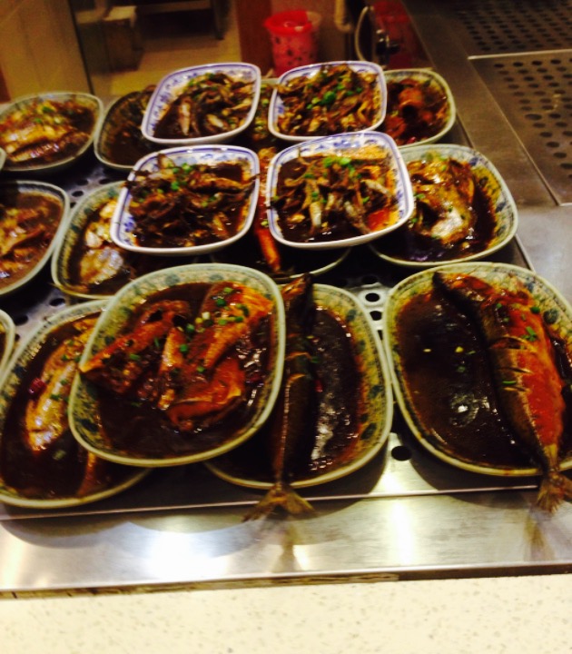 ...看来生意很好,点了黄豆炖猪脚,番茄炒鸡蛋,红烧龙鱼,蒜苗炒肉,加上两份米饭,共60元,很有气味