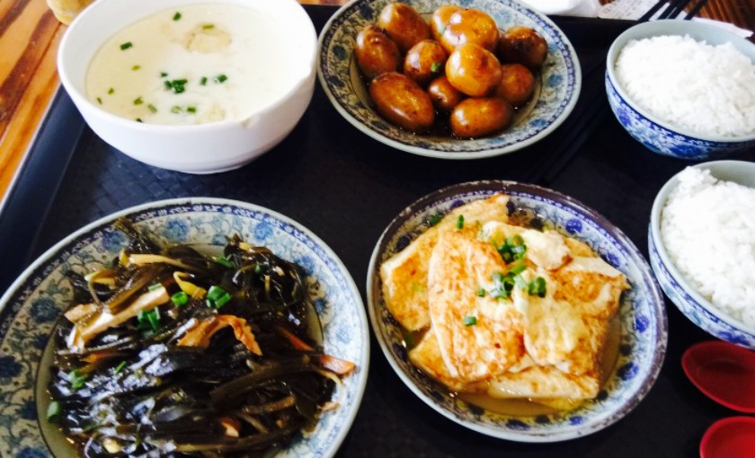 现在大食堂是遍地开花,原来一些快餐店都改叫大餐厅了,每一家都是快速餐饮类型。攻略对大食堂的大致印象是生意火爆,价钱实惠甚至低廉,菜品口味基本符合攻略口味。大食堂薄利多销的经营理念,也依靠其成本管理的精细化。这家沈家大食堂位于舟山,一贯的解放大餐厅的装潢,进门墙上还有“人民公社大食堂”的字样,很是怀旧。恰好去舟山出差,我们五个人一共点了9个菜,别人请,价格未知。【咸蟹】蟹是公认的食中珍味,有“一盘蟹,顶桌菜”的民谚。舟山的一道特色菜,宁波也有一个好听的名字叫“红膏呛蟹十八斩”,这边做的不是很咸,恰好合我的口味,肉多,脂膏肥满,味可口。【红烧鲻鱼】鲻鱼切成大块红烧,嫩如豆腐,香如蟹肉,哪怕是红烧也能吃出肉质嫩滑,味道鲜美。【白斩鹅肉】鹅肉鲜嫩松软,清香不腻。沾上一点酱油鲜美至极。【番茄笋干汤】这是夏日里最好的汤品了,非常合口味,又好喝消暑。【醉鱼干】鱼干不干,有点点水分,咸淡适中,又有些嚼劲,不错。其它不一一累述了。对了,二楼还有口袋本的小画册,《大闹天宫》《愚公移山》等神话故事都有,吃完饭休息的时候可以翻看一下,大概这是七八十年代的人的回忆了吧。