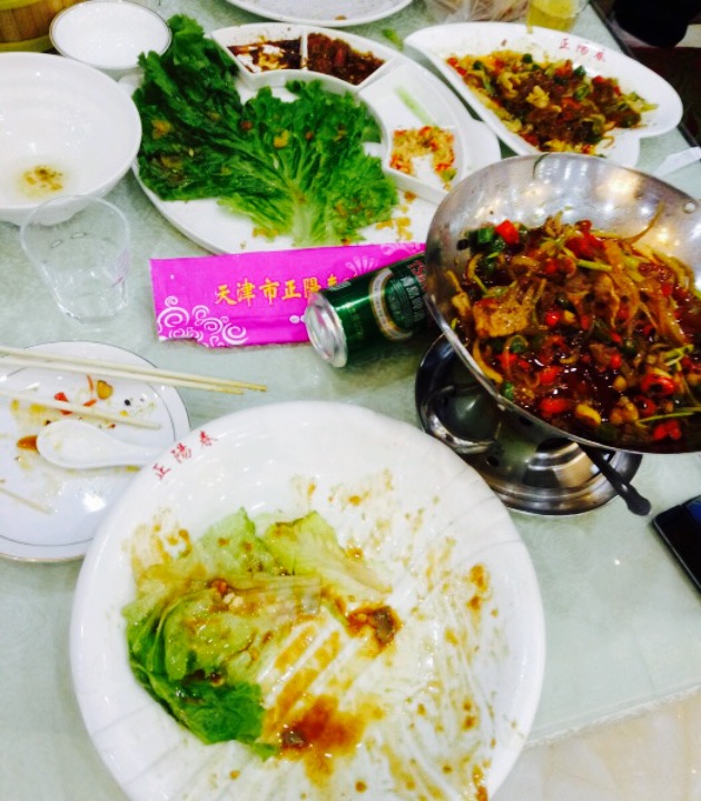环境还不错,有电梯,这次点的比较多,要了一个半烤鸭,余下的做了椒盐鸭架,毛血旺够辣,又点了蒜香...