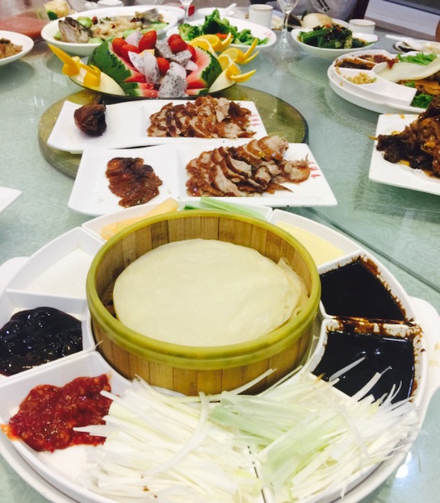 前几天来过一次,今天又来了,提前预订了三楼的包间,环境还不错,有电梯,这次点的比较多,要了一个半烤鸭,余下的做了椒盐鸭架,毛血旺够辣,又点了蒜香鸡翅,蒜蓉西兰花,味道不错,宫保鸡丁里的花生仁一点都不脆,京酱肉丝味道不错,炸茄盒味道不错,有些油,吃多了有些腻,素炒荷兰豆也挺油,清炒苦瓜有点油,清蒸平鱼味道一般般,主食要了一份牛肉饼和番茄鸡蛋汤,味道还可以,甜品要了一份麻团。