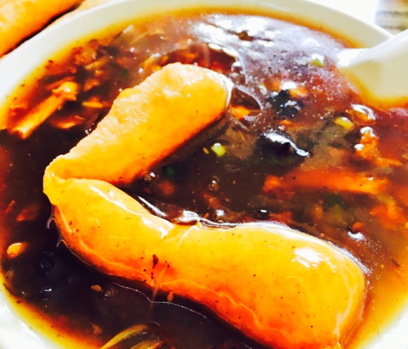 专门开车来喝的,推荐了两家,先高乐园了。位置不是非常好找,胡同里人车都比较多。店里一个小伙儿熟练的炸小油条,大姐给人盛汤。看评论平时到11点胡辣汤就卖的七七八八不剩下什么了。也许是节假日的缘故,今天去的时候十点半了,汤还剩下一半。点了两碗汤,一大堆小油条,吃的一点儿不剩。胡辣汤各个地方的口味都不一样,这家还算是正宗,油条炸的也不含糊。不过店里的干净环境真的是需要改善。