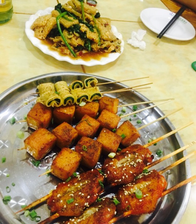 ...生很热心的招呼我们,给我们介绍这里的风味,羊肉串比上海的更正宗,上面还有很多羊油,让人垂涎欲滴
