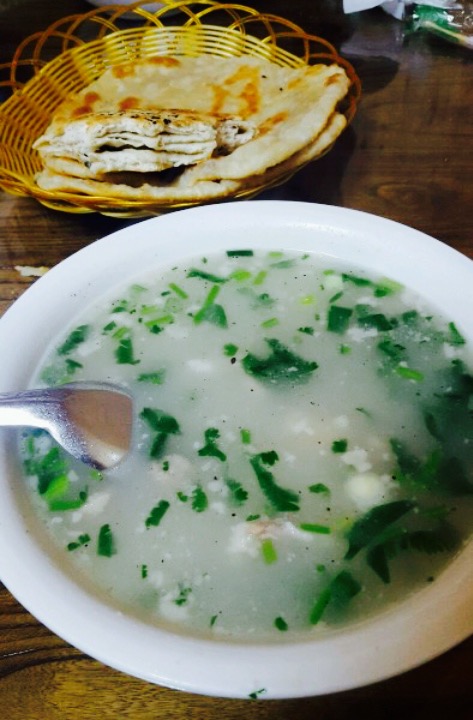 在山东第一次吃到羊肉,很有味儿。「位置」在山水集团青岛分公司旁边的小十字路口旁边,有好多一层的房子,大多都是就餐的。「口味」点了羊肉一份,羊肉汤书当面浇上去的,味道比较入味,没有膻味,小菜什么的也很入味,推荐糖饼,敲好吃的。「服务」羊肉店的服务都输快餐式的服务,半自助,上菜很及时的。
