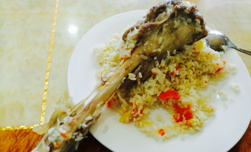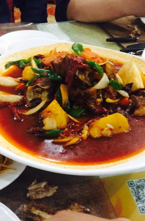 轮台已经属于南疆了。在轮台的第一顿晚餐。找到了这家店,可是是汉人开的,来的也基本都是汉人。有游客,也有当地人,来的时候还等位等了一会。现场看了烤制过程。大红腰很鲜美,是一路上吃到的烤制火候最接近济南烧烤的。肥油入口即化,略有骚味,但骚的刚刚好。羊排烤的略轻,不算焦,如果喜欢火大的,可以提前说。酸奶没怪味,但还是加了砂糖更美味。汤面和馕的味道和其它店无明显差别。吃起来总的来说还是蛮爽的。