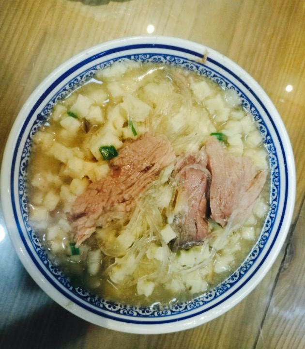 泡馍还可以,普普通通的肉也好多,但是很大一块肥的,机打的就是匀,自己掰太慢了。糖蒜一份很少,但是可以再取,不加价。烤肉撒的辣子感觉味道怪怪的,肉很大块,要的烤筋,焙得不够干。口味一般般吧。里面觉得坐的很拥挤,虽然桌子很大,不过两桌中间间距太窄了,总会碰到。