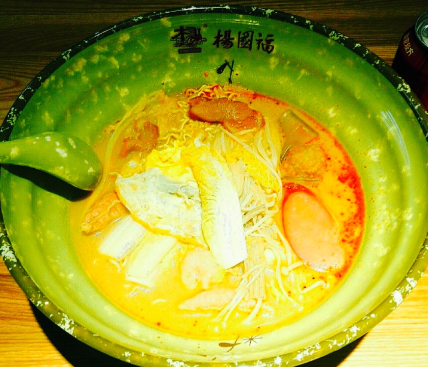 发现附近开了一个较为卫生的麻辣烫。是一个锅子一碗麻辣烫的。不是几碗麻辣烫放在一个大大大桶里煮的。看起来比较整洁。所以按耐不住诱惑。或许是好久不吃麻辣烫的原因,也有可能是我要了清汤,不过自己加了好多的花生酱,还有花生碎,再来了一点麻椒油,一点点的辣椒油。哇, 。有些麻有点辣,辣麻鲜,方便面配上汤非常入味,??。就是,好想,东西没煮熟,觉得有些硬,??。