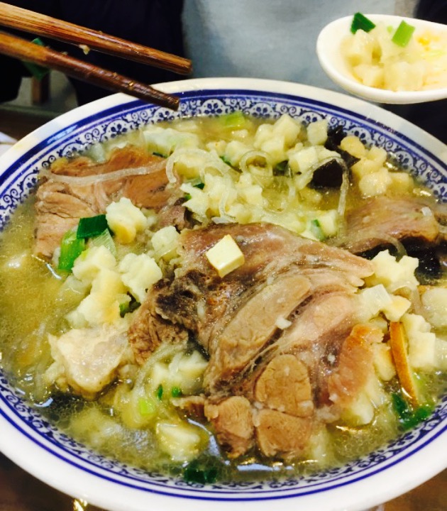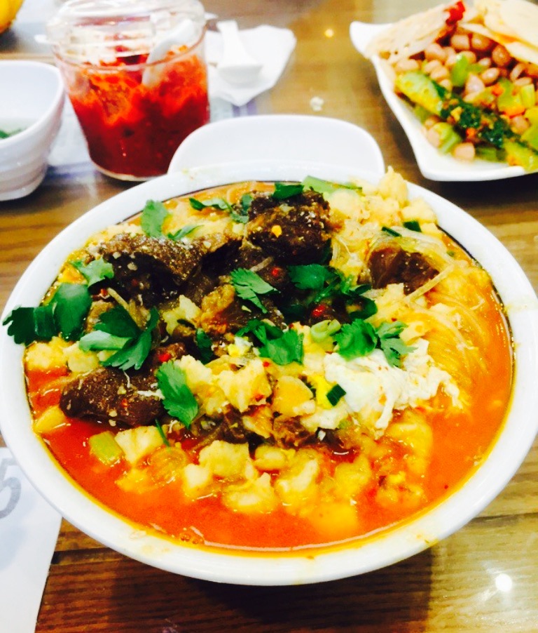 非常好吃,没膻味。特别好喝,汤味道淡。家里带去的,店很大,宽敞明亮。中午四大两小,要的优质小炒和泡馍