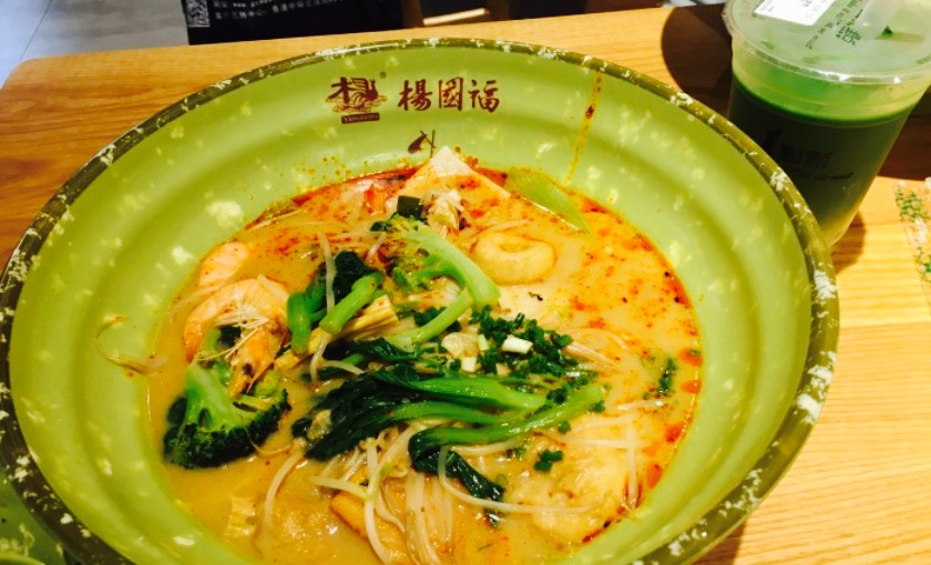 家附近开了一家杨国福麻辣烫,话说高桥人民是真的幸福,一条路上杨国福,一点点,快乐柠檬都有??????。#环境#。新开的店环境不错,看起来蛮整洁。#自助#。佐料和餐具都是自助的,需要去消毒柜里拿。#菜品#。品种蛮多的,有我喜欢的海带结,玉米肠和娃娃菜。丸子类嘛 。各种都来一个,再加上豆腐皮,红肠,乌冬面等等。之所以带水的蔬菜啊什么的要把水沥干,是因为是称重。选了微辣,最喜欢他家的汤底,很醇厚,不像其他家清汤寡水,最惊艳的是老油条,蘸了汤汁大满足。27元的一份吃的很饱????。#优惠#。新开业期间,凭小票可以领一份饮品,肯定要在麻辣烫来之前去领掉,不然服务员会在上菜的时候把小票收走??。