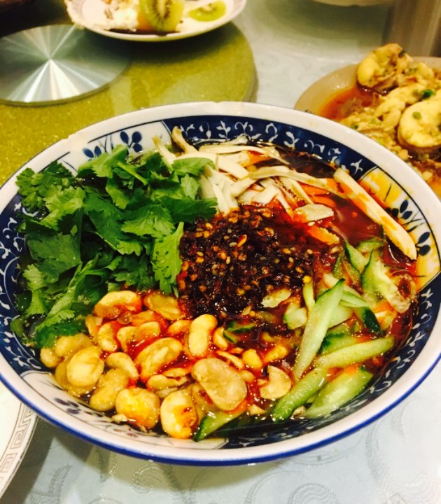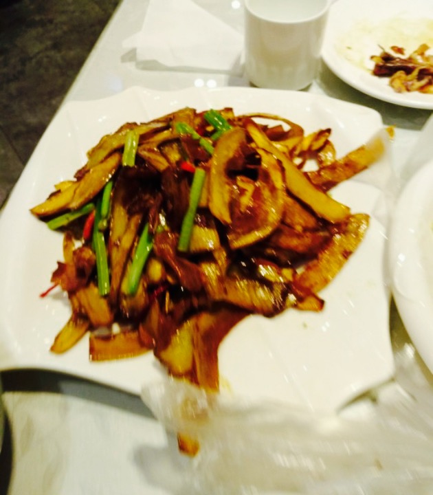 坐了一天车,啃了一天干粮后,第一顿热乎菜。看菜单感觉什么都想吃,什么都好像很美味,最后加加减减点了两个凉菜两个炒菜一个卤菜一份疙瘩汤一个小吃,四人共计97元,没有茶位费,人均不过25,价位实在实惠,但味道就凑合吧。【口味】『卤鸡爪』放了不少香料,但味道真的一般,不晓得是不是香料太多反而吃不出个中味道。『手撕包菜』有点太咸,不过炒的火候控制挺好,菜肴。『拌莜面』不明白什么味道,香菜太多,没怎么吃,就是长辈们挺高兴。『猪头肉』也挺一般,大失所望。『小炒杏鲍菇』太甜了,如果是咸口感觉更入味,而且切的是薄片还炸得有点太过,吃着有点费牙口。『红糖什么什么忘了』太油。『疙瘩汤』便宜量大,点的是“半古”分量也好多,喝着挺舒服,不错。【环境】还算卫生,好像有楼上两层,门口有停车位。【服务】挺热心的,挺好。