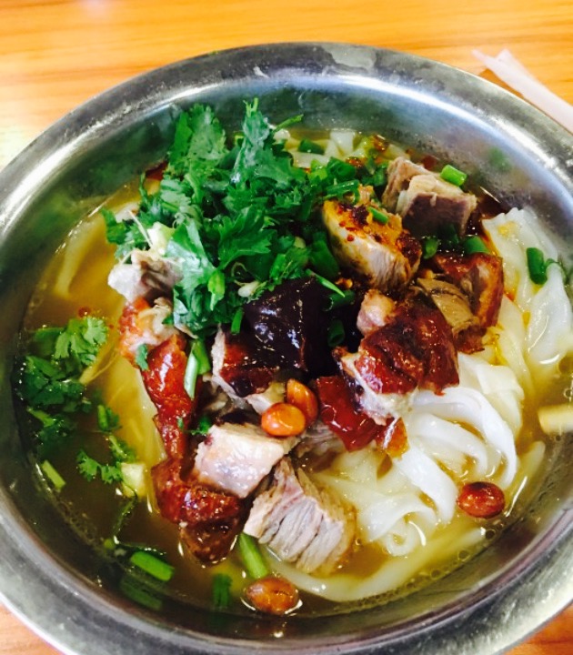 这家店位置还蛮难找的,在保利凯旋大道路口电信专卖店旁的美食街里,店面装潢设计带点古色古味,总体觉得还不错,整洁干净卫生,环境很幽静,他家的烧鸭粉,粉很嫩滑,烧鸭皮脆肉香,不油不腻,汤也够鲜,吃起来很舒适,算是性价比比较高的地方了,服务也很好,桌子上还配有装鸭骨头的盘子,考虑很周全,很不错的感受,给个赞。