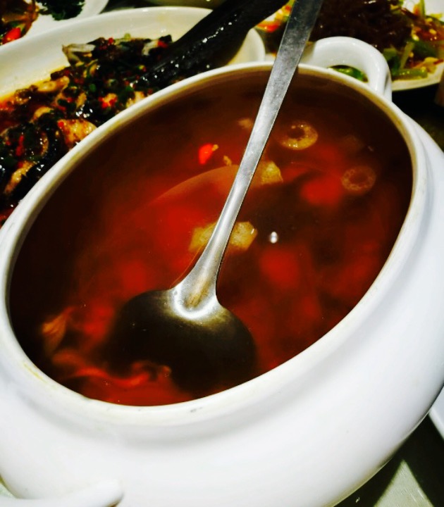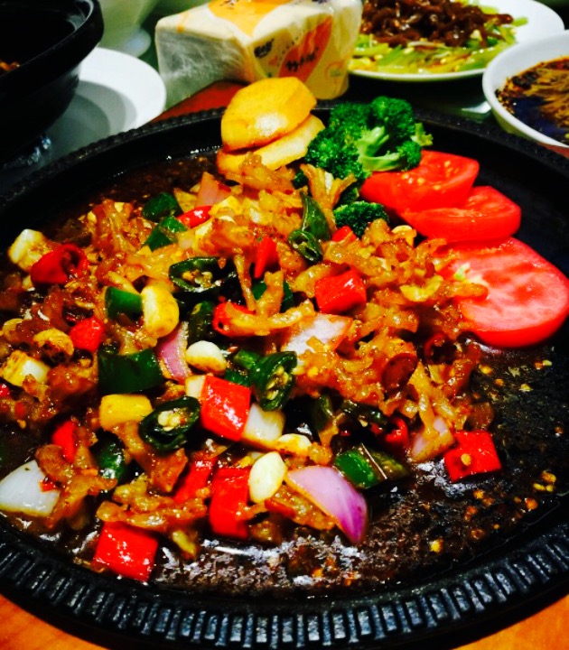 位置在长安广场广场北路上,国力仁和旁边。进去三楼是大厅,四楼是包间,我们四个人团购的四人餐。量大味美,爸爸妈妈都感觉特别合算。蒸盆子清汤鲜香,莲藕绵软,萝卜清甜,猪蹄软糯,好评。土豆粑粑炒腊肉油重味厚,粑粑嚼劲十足,腊肉烟熏味足,好评。烧鸭皮脆微甜,妈妈很开心,好评。锅盔辣子,锅盔比较软,不干不柴,青椒是红辣子,入口香辣,我吃了好几个 。好评。服务员殷勤热情,好评。于是第二天家庭九人聚餐,又订了十人包间,包间环境很好,好评。孜然羊肉好评。
