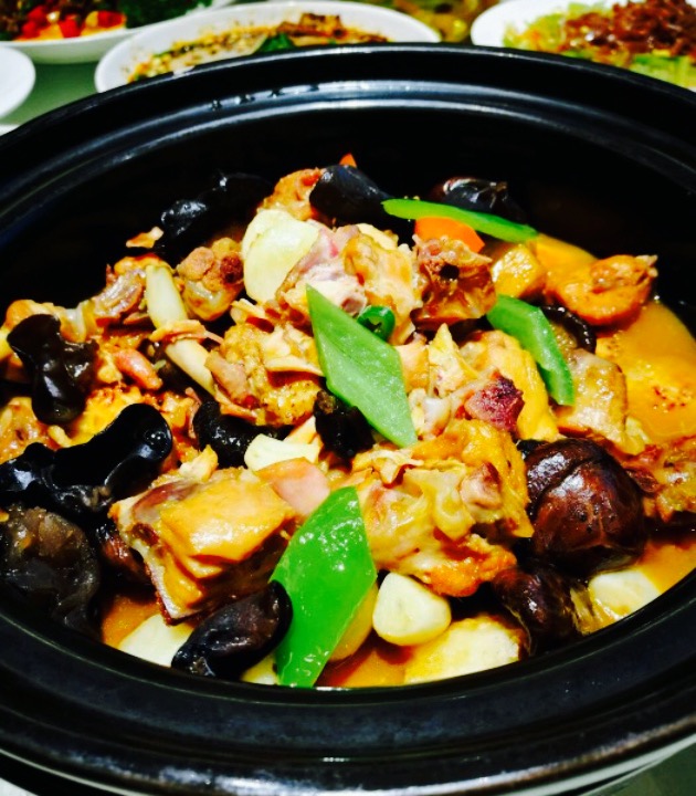 跟着老妈混吃混喝[第三辑,买的是团购的4人餐,感觉特别划得来了。菜挺多的 。一个凉菜,3个热菜,一个蒸盆子 。还有汤,主食有白米饭和锅盔辣子,4个人是足够吃的。他家整体味道挺好的,比较喜欢腊肉炒耙耙,很喜欢耙耙的嚼劲,有点像炒饼里的饼。烤鸭的皮超级酥脆,配梅子酱非常美味。觉得锅盔辣子里地锅盔有点硬,并且里面比较虚,不是很推荐。