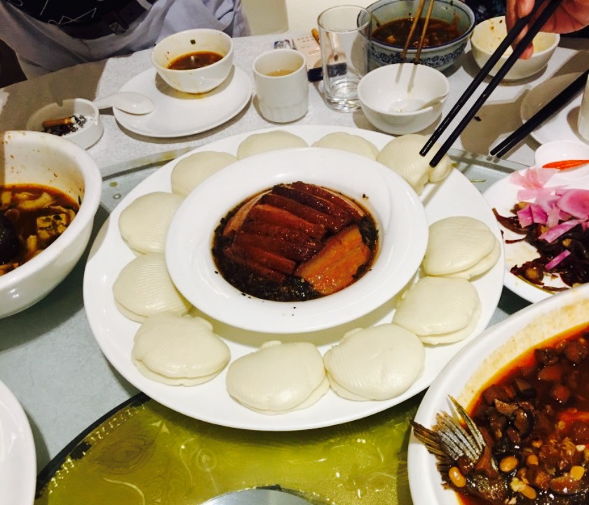 烤鸭的皮超级酥脆,配梅子酱非常美味。觉得锅盔辣子里地锅盔有点硬,并且里面比较虚,不是很推荐