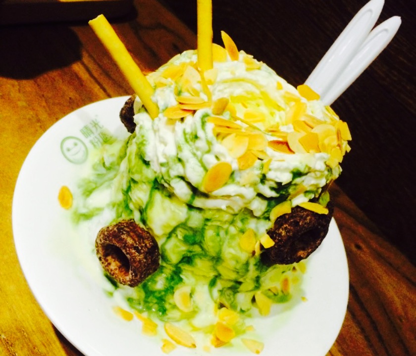 这次试试的是红豆抹茶的沙冰和芒果的沙冰,本人觉得芒果味的沙冰味道还不错位置在食品街的中段,店面算适中吧,人还是挺多的,服务态度挺好的,上甜品的速度也挺快的。这次试试的是红豆抹茶的沙冰和芒果的沙冰,本人觉得芒果味的沙冰味道还不错。抹茶的味道有些淡,并且加的奶酪味道也有些淡。