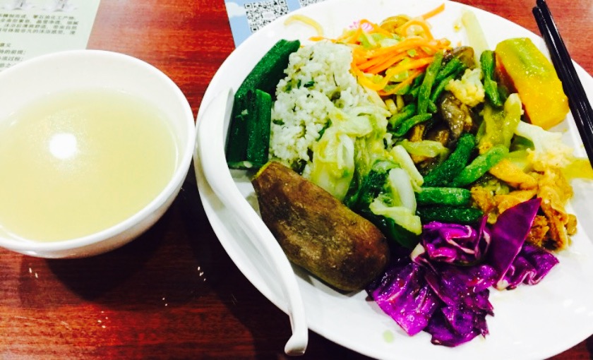 就住在隔壁。查网友攻略偶尔查到这么一家店。觉得超不错。15块一位的素菜自助。付完钱拿餐具自己找地方坐。菜品选择不是非常多。不过味道都还可以。还有番薯 。玉米 。南瓜之类的杂粮。也有粥和汤。有一次还见到有橘子。这个价格实在很棒了。偶尔换换吃顿素菜好惬意。